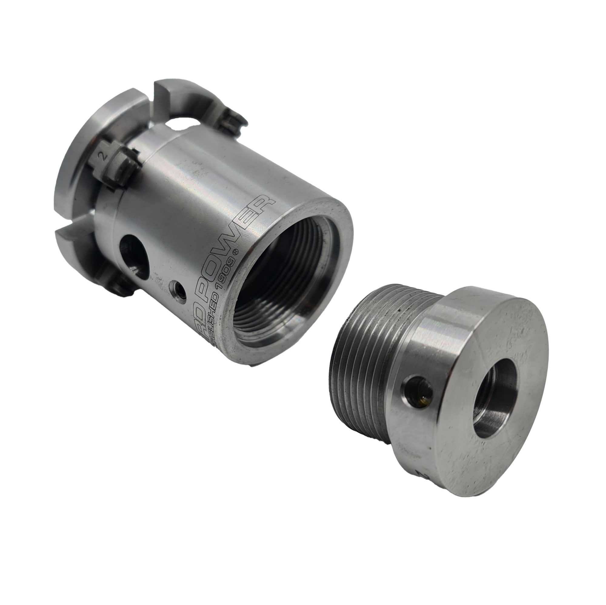 Gevindadaptoren skrues ind i spændepatronen med 40 mm gevind og laver derved gevindet om til den ønskede størrelse.