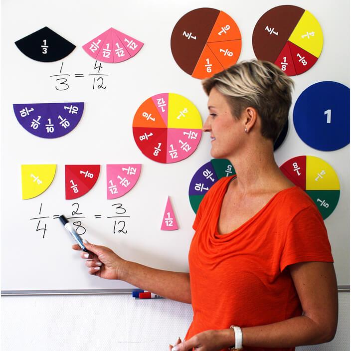 Smart, magnetisk brøkcirkler med tydelige tal, så man på pædagogisk vis kan arbejde med brøker. Med den magnetiske bagside, kan den sættes op på tavlen, så alle kan se med.