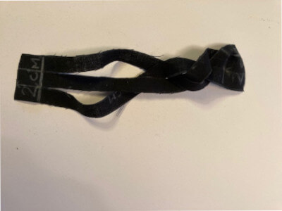 Tegn skabelon op på prøvestof - her 20 cm i længe og 3 cm i bredde.