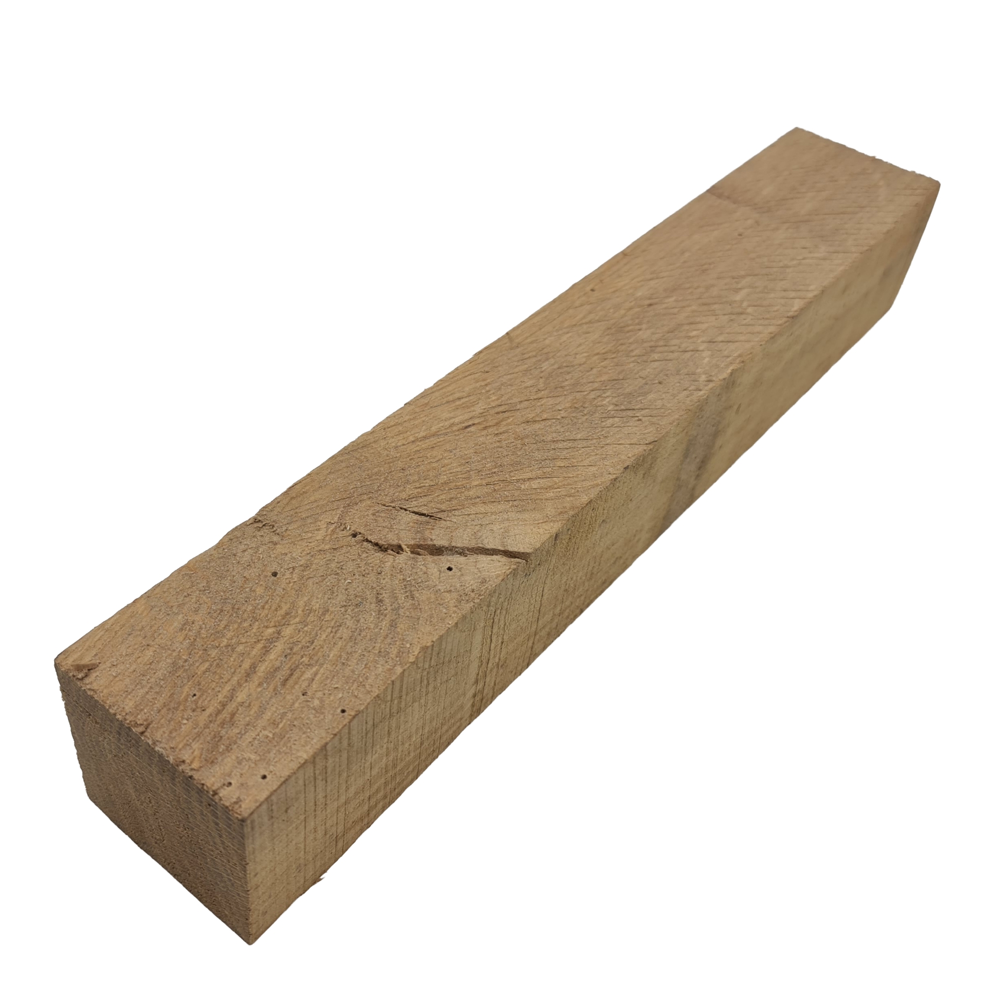 Egetræ i dimensionen 52 x 52 x 320 mm i 2. sortering. Her er tale om massivt, gedigent træ med det klassiske udtryk, som eg er kendt for, men hvor der må forventes naturlige variationer og synlige spor fra træets liv.