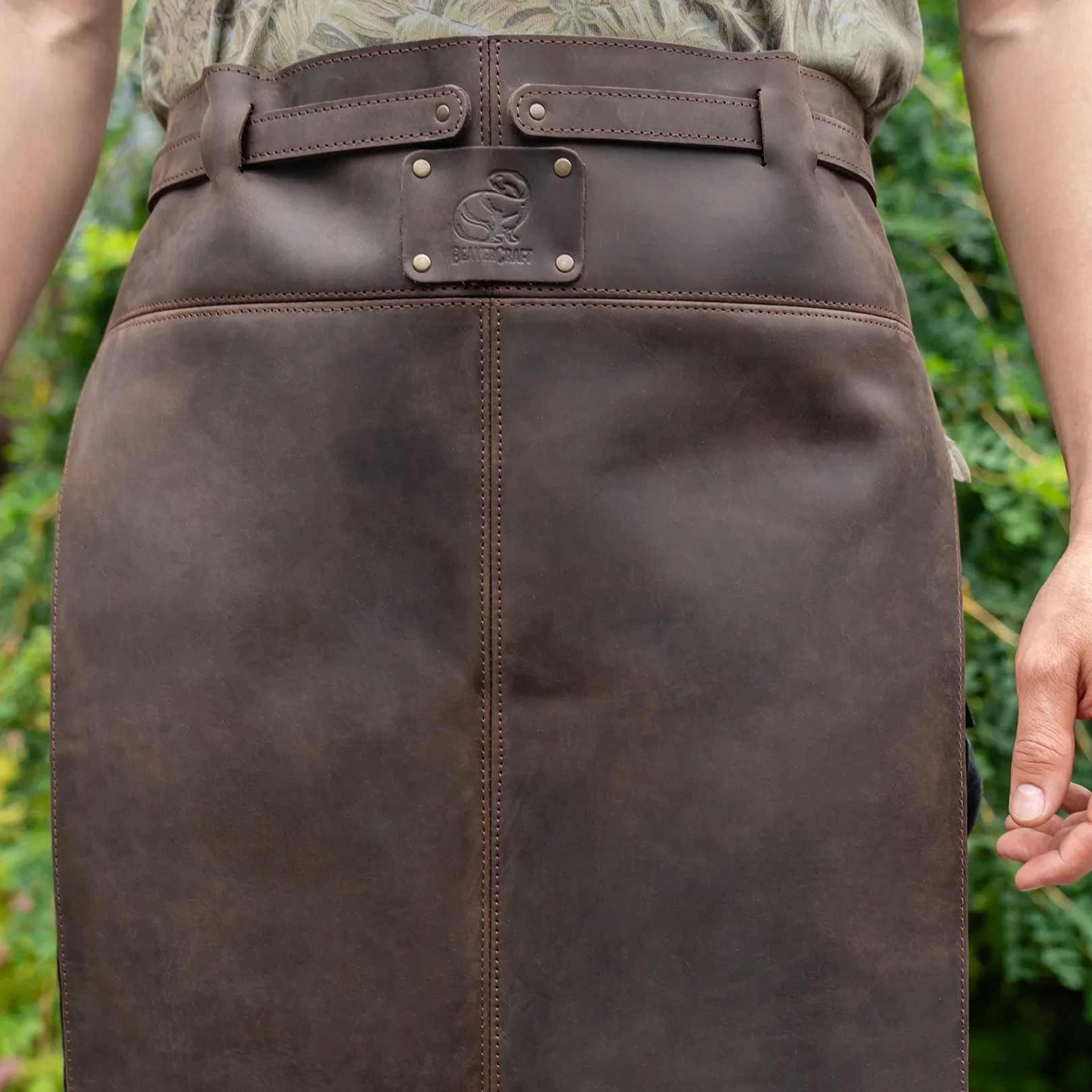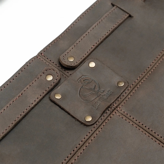 Håndlavet af det fineste “crazy horse”-læder, kendt for sin styrke og karakter, fungerer forklædet som dit skjold mod slid og skidt under arbejdet. Med tiden udvikler læderet en smuk patina og bliver en del af din kreative rejse.