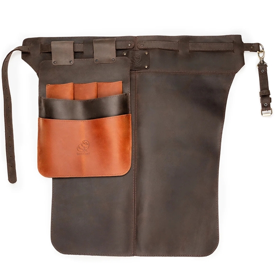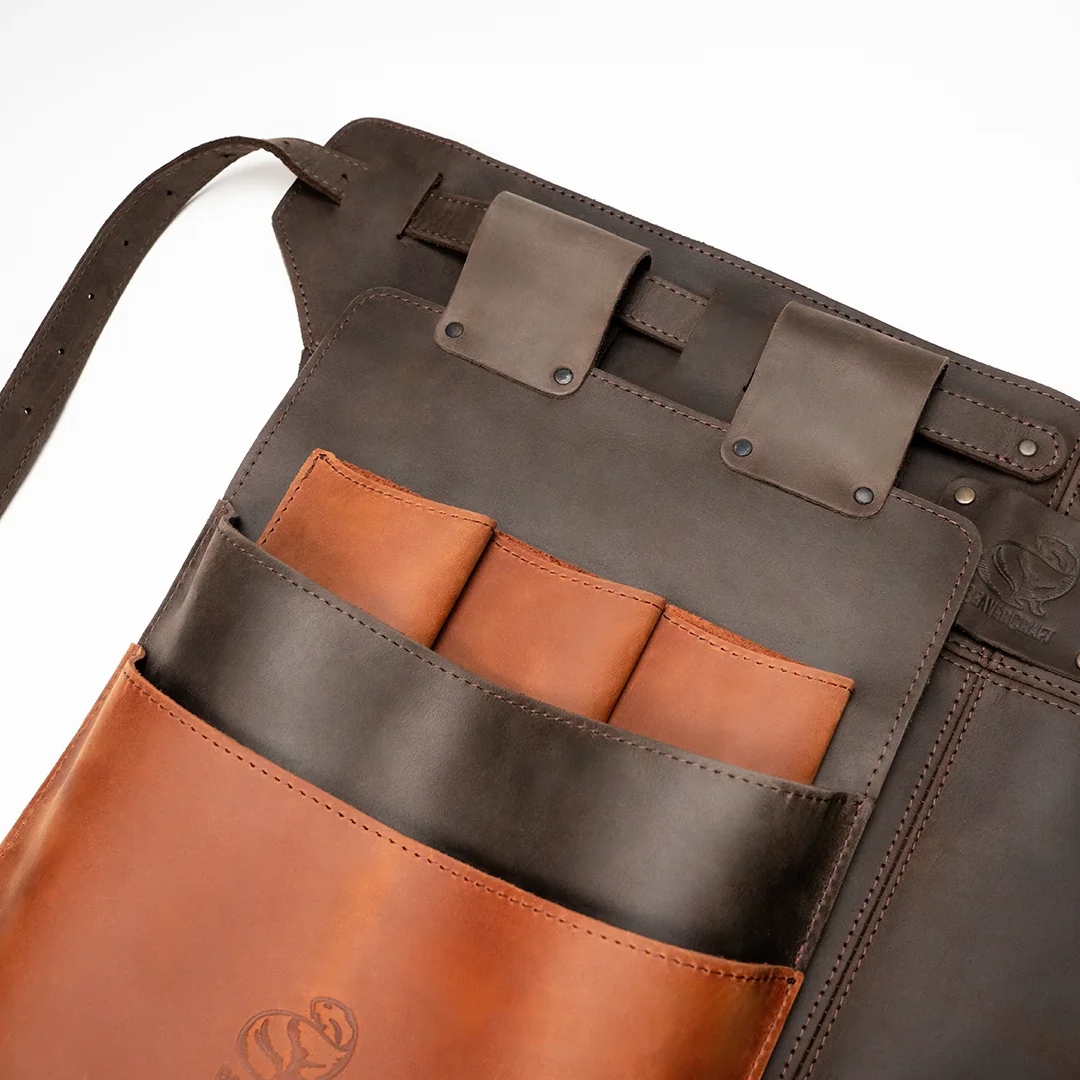 Oplev den perfekte kombination af stil og funktionalitet med Leather Work Apron og Tool Belt Pouch Set – et match lavet i højeste kvalitet “crazy horse”-læder.