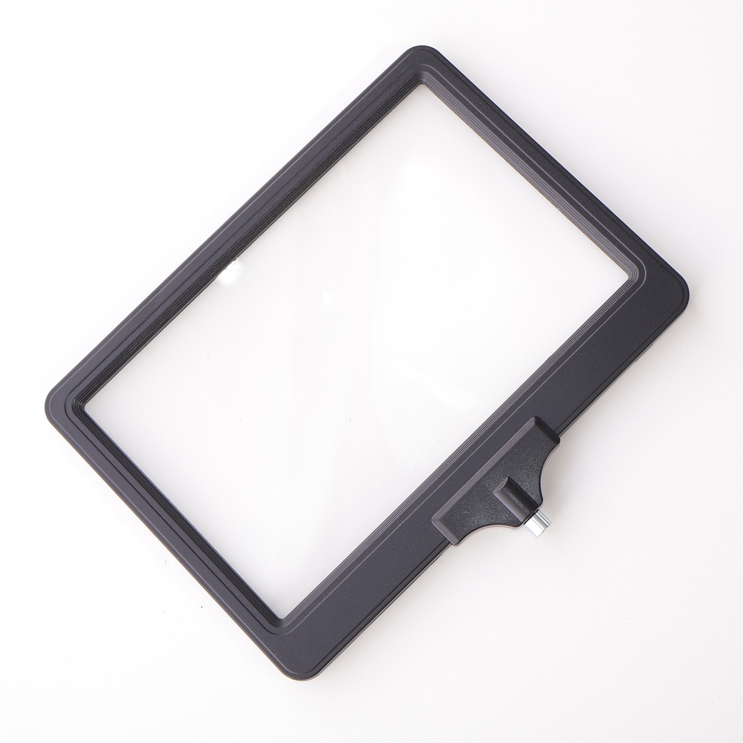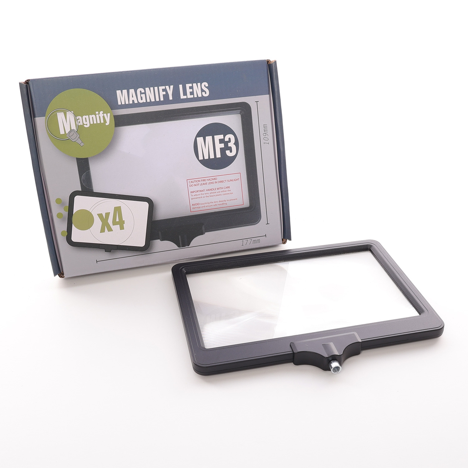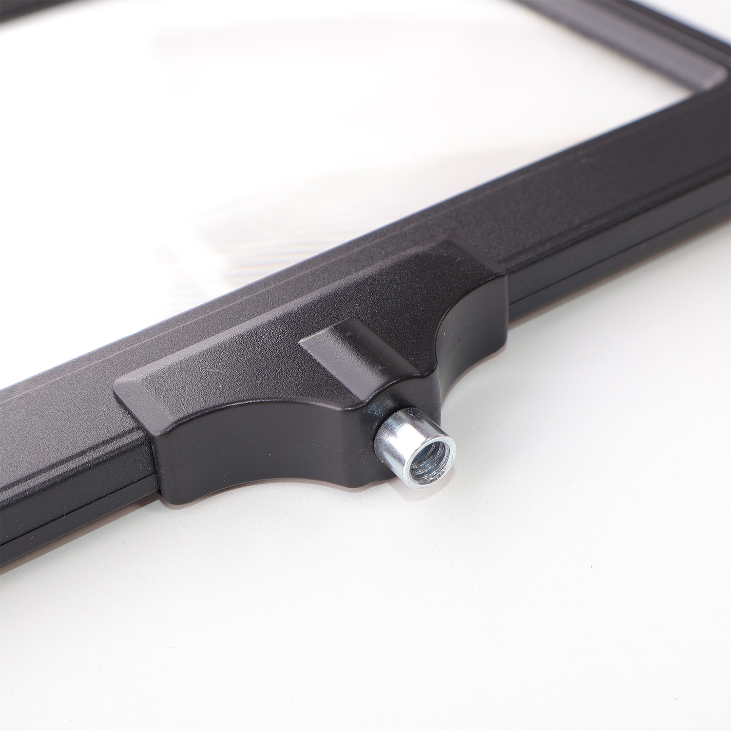 Dette forstørrelsesglas måler 205x170 mm og er designet med en beskyttende kant, som giver ekstra holdbarhed og beskyttelse mod skader. Kanten hjælper med at beskytte linsen mod stød og ridser, hvilket gør det til et ideelt valg i krævende arbejdsmiljøer.