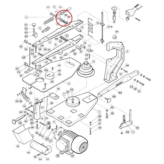 Reservedel nr. 509 til Hegner dekupørsav er den øverste akselbolt, som har gevind i enden, så flex-blæseslangen kan monteres.