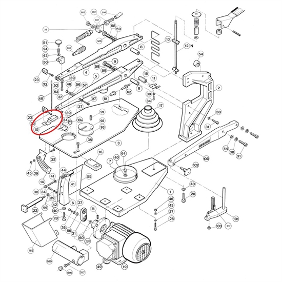 Reservedel nr. 10 til Hegner dekupørsav er en fjederbelastet holder, som fastholder den nederste savklingeklemme på plads.