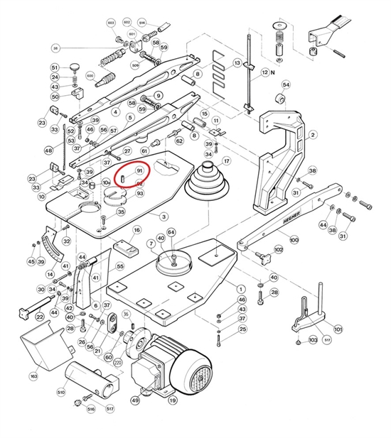Reservedel nr. 91 til Hegner dekupørsav er en låsesplit, som monteres i savbordet.