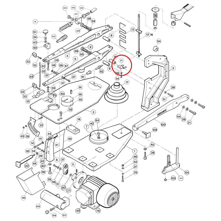Reservedel nr. 11 til Hegner dekupørsav er en gaffel, som holder spændestangen på plads på den nederste savarm.