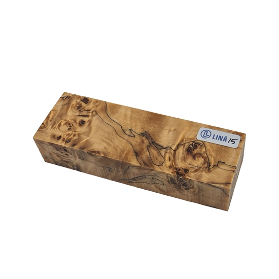 Dette træemne er et Masterpiece, nøje udvalgt på grund af sine særligt flotte mønstre og farvespil. Emnet er fremstillet af poppelknude, som i forvejen er kendt for sin dekorative og levende årestruktur med naturlige knuder og variationer, men netop denne klods skiller sig ud med et ekstraordinært spil i både farver og kontraster. Knudeformationerne giver et udtryk, der er helt unikt, og materialet egner sig derfor især til projekter, hvor æstetikken er i centrum – eksempelvis eksklusive knivskæfter, smykker eller greb, hvor man ønsker noget ud over det sædvanlige.