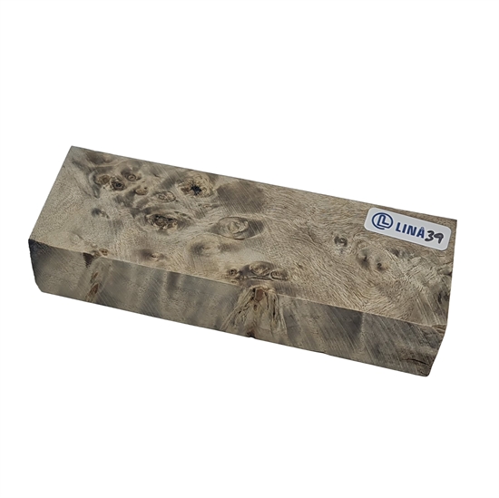Dette træemne er fremstillet af nøje udvalgt poppelknude, som er kendt for sin dekorative og levende årestruktur med naturlige knuder og farvespil. Knudeformationerne giver hver enkelt blok et unikt udtryk, hvilket gør materialet særlig velegnet til projekter, hvor det visuelle udtryk er vigtigt – eksempelvis knivskæfter, smykker eller eksklusive greb.