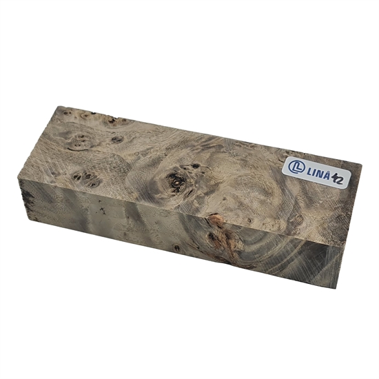Dette træemne er fremstillet af nøje udvalgt poppelknude, som er kendt for sin dekorative og levende årestruktur med naturlige knuder og farvespil. Knudeformationerne giver hver enkelt blok et unikt udtryk, hvilket gør materialet særlig velegnet til projekter, hvor det visuelle udtryk er vigtigt – eksempelvis knivskæfter, smykker eller eksklusive greb.