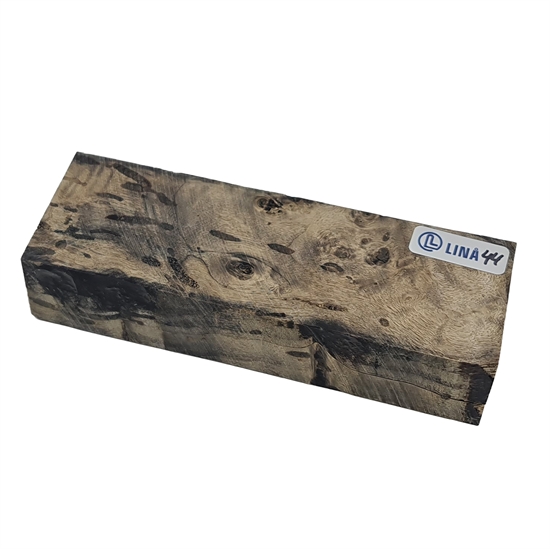 Dette træemne er fremstillet af nøje udvalgt poppelknude, som er kendt for sin dekorative og levende årestruktur med naturlige knuder og farvespil. Knudeformationerne giver hver enkelt blok et unikt udtryk, hvilket gør materialet særlig velegnet til projekter, hvor det visuelle udtryk er vigtigt – eksempelvis knivskæfter, smykker eller eksklusive greb.