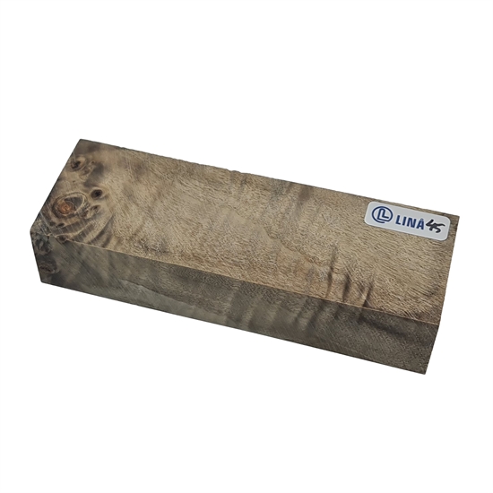 Dette træemne er fremstillet af nøje udvalgt poppelknude, som er kendt for sin dekorative og levende årestruktur med naturlige knuder og farvespil. Knudeformationerne giver hver enkelt blok et unikt udtryk, hvilket gør materialet særlig velegnet til projekter, hvor det visuelle udtryk er vigtigt – eksempelvis knivskæfter, smykker eller eksklusive greb.