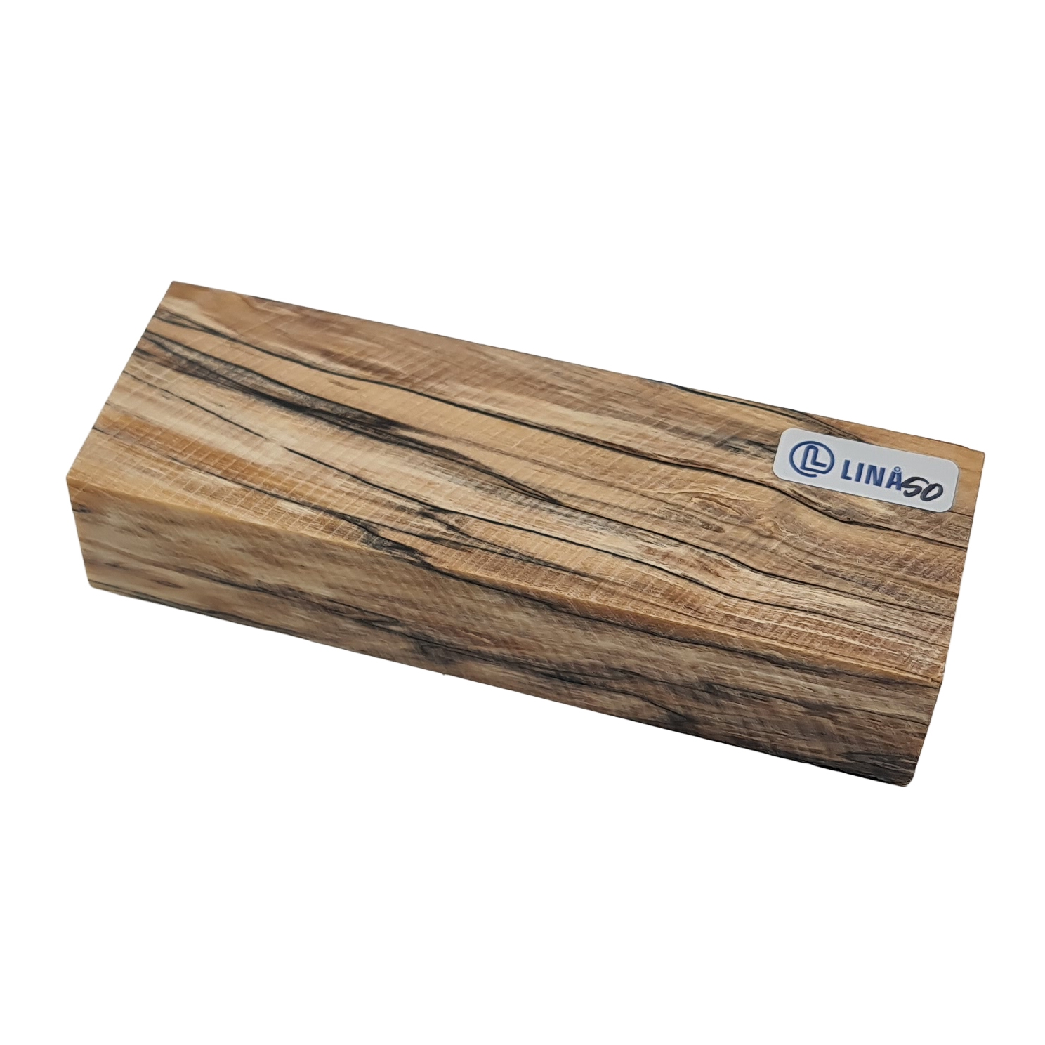 Stabiliseret træemne til knivskæfte – Anløbet bøg med tydelige mørke aftegninger efter rådangreb (stabiliseret af Raffir)