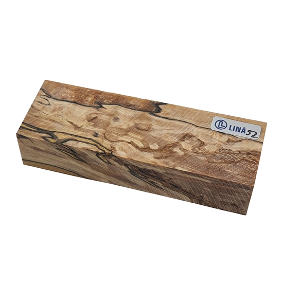 Dette træemne er fremstillet af nøje udvalgt bøgetræ, som er kendt for sin fine og ensartede årestruktur samt et roligt grundudtryk i overfladen. I dette emne fremstår træet med anløbning og tydelige mørke aftegninger, som stammer fra tidligere rådangreb. Disse naturlige spor skaber et levende og kontrastfyldt spil i træet, hvor de mørke partier danner organiske mønstre mod den lysere grundtone. Resultatet er et meget karakterfuldt og unikt udtryk, hvor hver klods har sit eget visuelle særpræg.