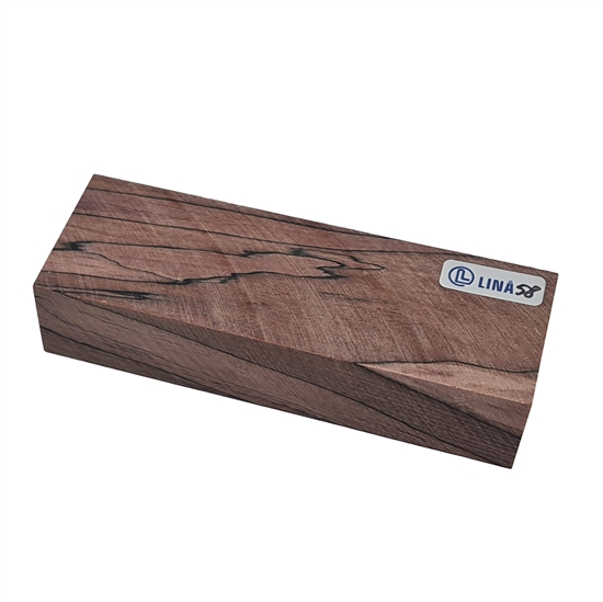 Stabiliseret træemne til knivskæfte – Anløbet bøg med tydelige mørke aftegninger efter rådangreb (stabiliseret af Raffir)