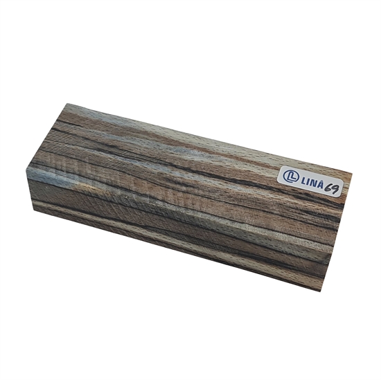 Stabiliseret træemne til knivskæfte – Anløbet bøg med tydelige mørke aftegninger efter rådangreb (stabiliseret af Raffir)