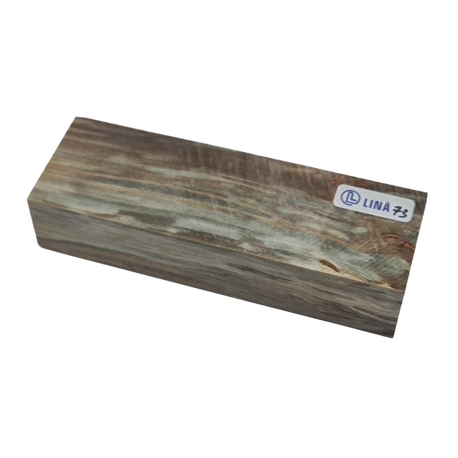 Stabiliseret træemne til knivskæfte – Anløbet bøg med tydelige mørke aftegninger efter rådangreb (stabiliseret af Raffir)