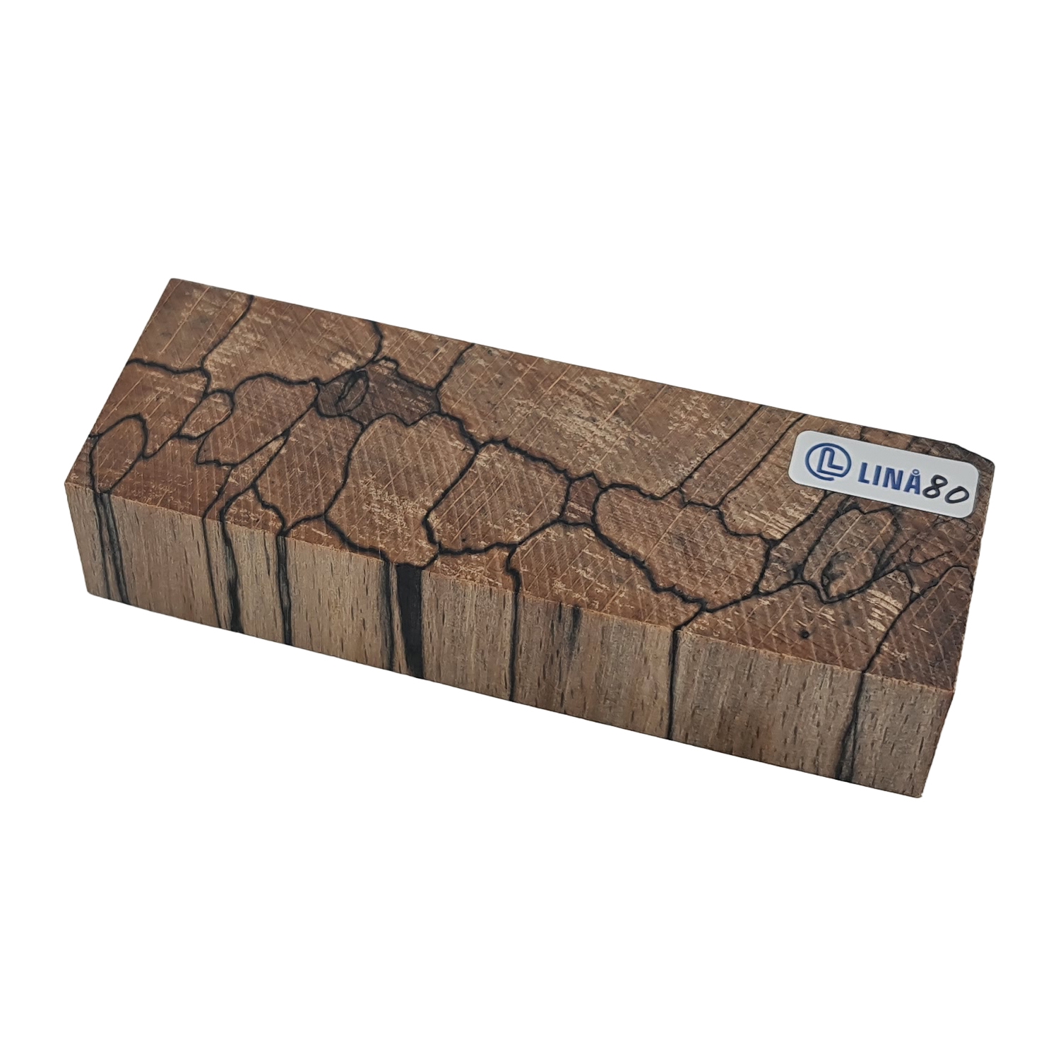 Stabiliseret træemne til knivskæfte – Anløbet bøg med tydelige mørke aftegninger efter rådangreb (stabiliseret af Raffir)