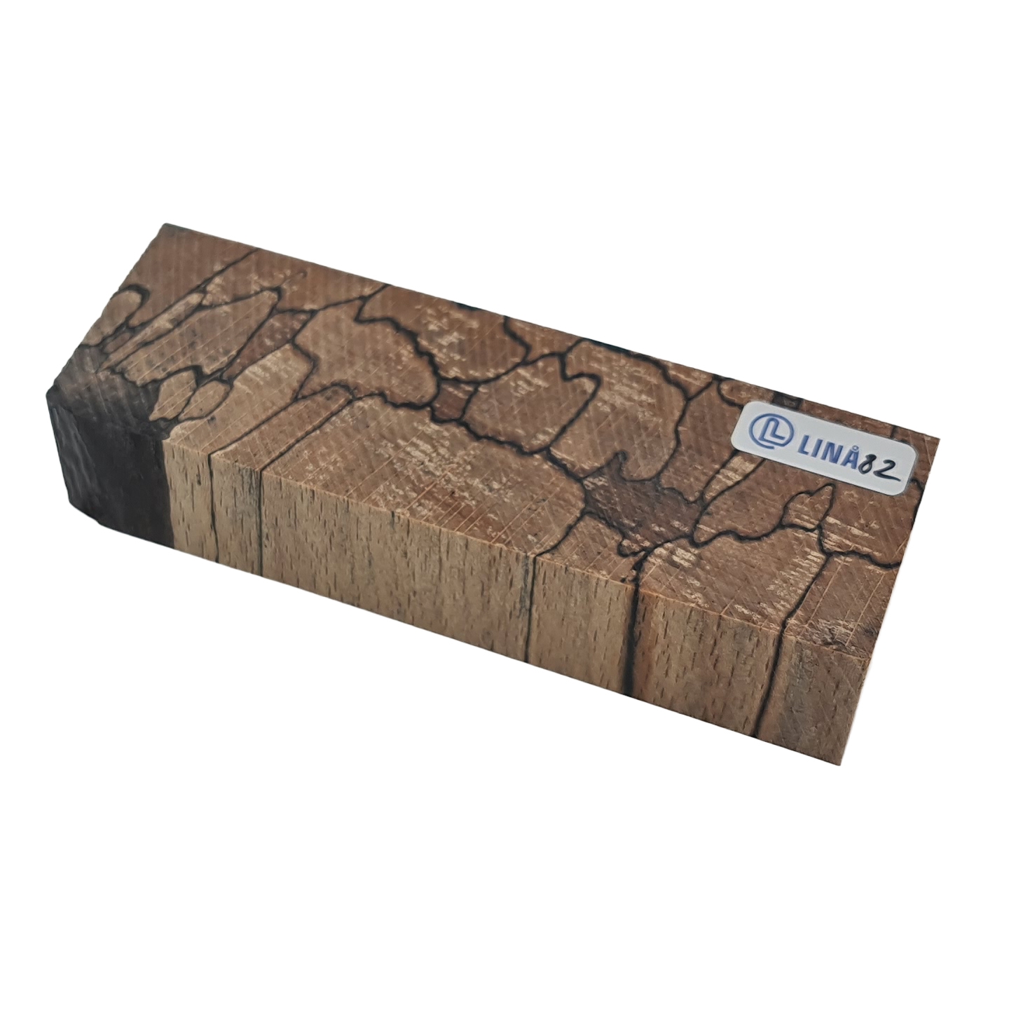 Stabiliseret træemne til knivskæfte – Anløbet bøg med tydelige mørke aftegninger efter rådangreb (stabiliseret af Raffir)