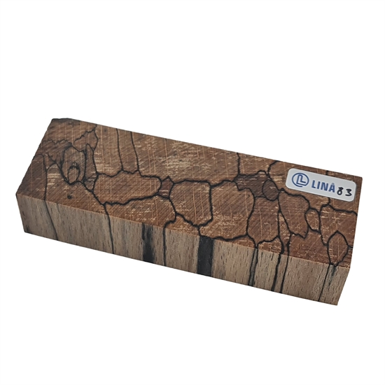 Stabiliseret træemne til knivskæfte – Anløbet bøg med tydelige mørke aftegninger efter rådangreb (stabiliseret af Raffir)