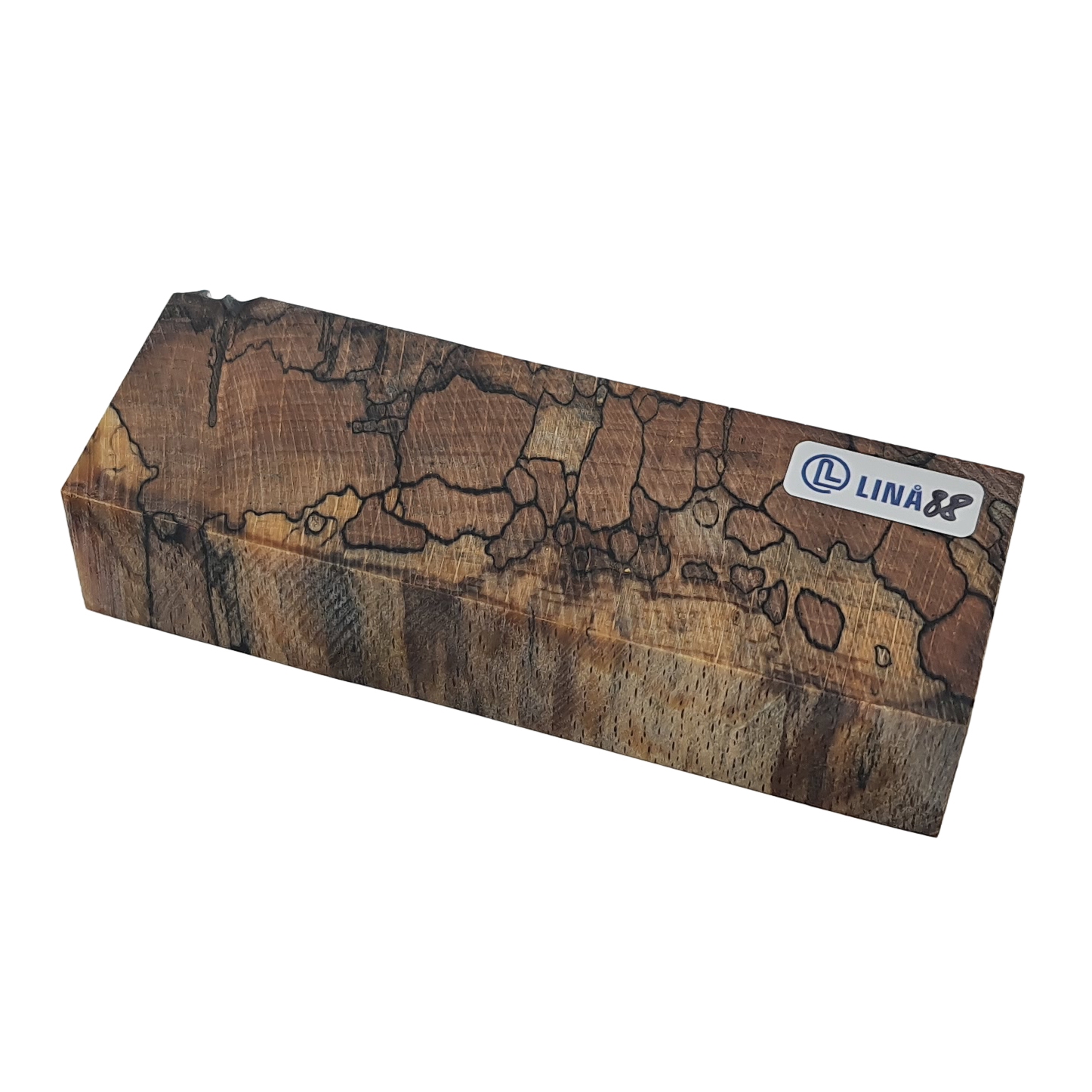 Stabiliseret træemne til knivskæfte – Anløbet bøg med tydelige mørke aftegninger efter rådangreb (stabiliseret af Raffir)