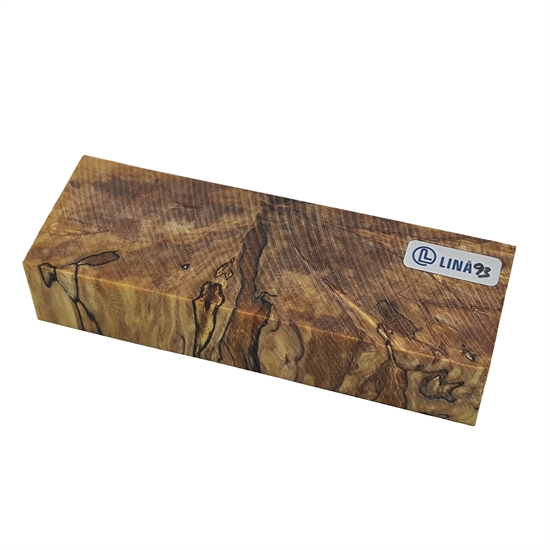 Stabiliseret træemne til knivskæfte – Anløbet bøg med tydelige mørke aftegninger efter rådangreb (stabiliseret af Raffir)