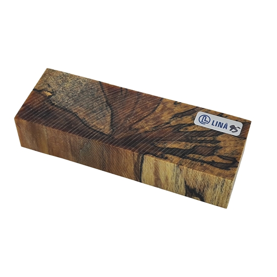Stabiliseret træemne til knivskæfte – Anløbet bøg med tydelige mørke aftegninger efter rådangreb (stabiliseret af Raffir)
