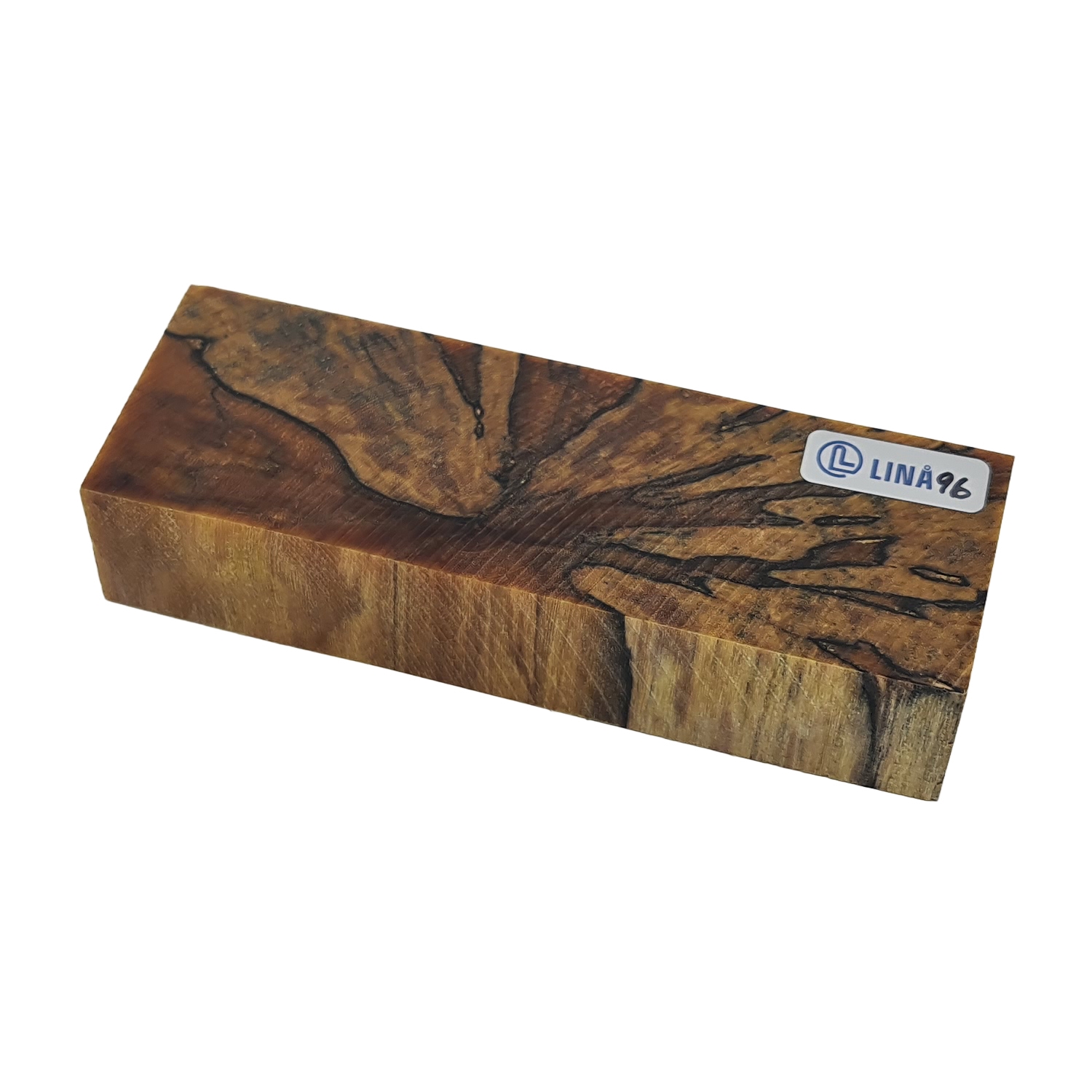 Stabiliseret træemne til knivskæfte – Anløbet bøg med tydelige mørke aftegninger efter rådangreb (stabiliseret af Raffir)