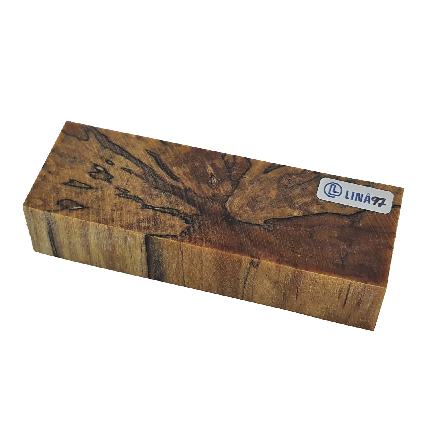 Stabiliseret træemne til knivskæfte – Anløbet bøg med tydelige mørke aftegninger efter rådangreb (stabiliseret af Raffir)