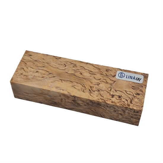 Dette træemne er fremstillet af nøje udvalgt masurbirk, som er kendt for sin levende og karakterfulde årestruktur med små knuder, bølger og et markant spil i overfladen. Den naturlige struktur giver et mere dynamisk og dekorativt udtryk, hvor hvert emne fremstår helt unikt. Det gør materialet særligt velegnet til projekter, hvor både æstetik og håndværk er i fokus – eksempelvis knivskæfter, smykker eller mindre greb.