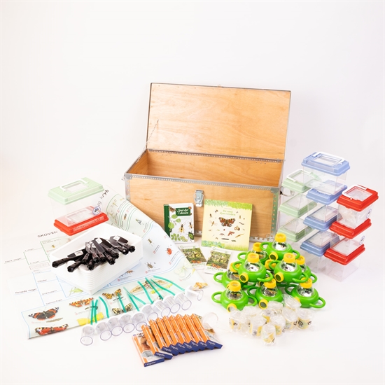 Stor emnekasse med alle de materialer der er brug for til at undersøge skoven som biotop. Med indholdet i kassen kan der laves mange forskellige relevante undersøgelser af både dyr og planter og deres levevilkår. Der er materialer nok til, at en hel klasse kan lave undersøgelser i felten på samme tid.