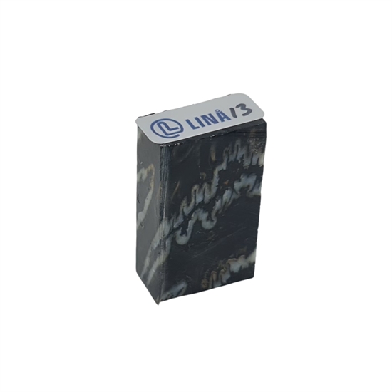 Mammut kindtand, også kaldet mammut molar, stabiliseret af Raffir er et særligt materiale med både historie og karakter. Tanden stammer fra den sidste istid, anslået 10.000 til 40.000 år tilbage, og bærer tydelige spor af sin oprindelse i struktur og farvespil. Gennem stabilisering med resin er materialet gjort anvendeligt til moderne håndværk, hvor det ellers fossile og porøse udgangspunkt får styrke og holdbarhed nok til praktisk brug.