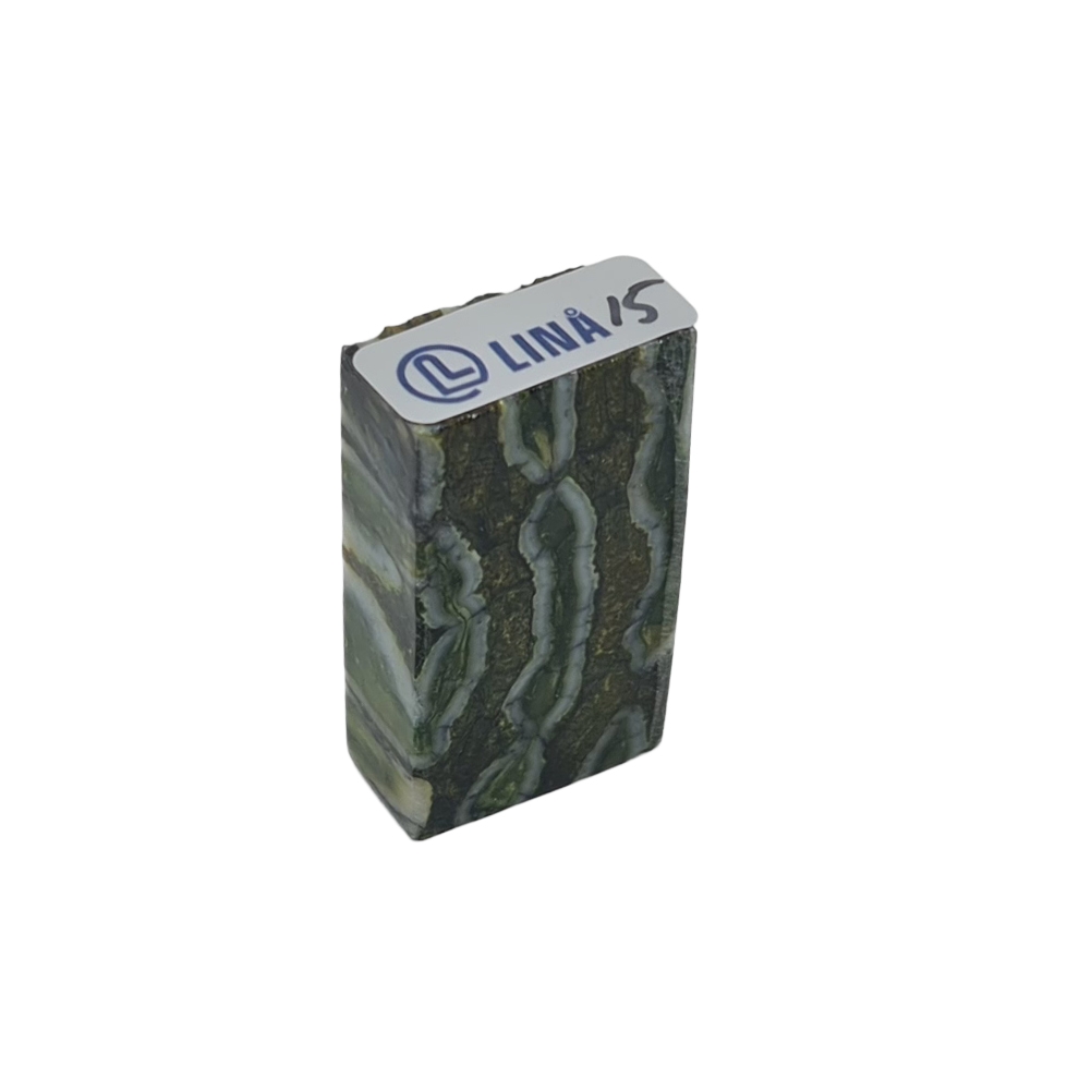 Mammut kindtand, også kaldet mammut molar, stabiliseret af Raffir er et særligt materiale med både historie og karakter. Tanden stammer fra den sidste istid, anslået 10.000 til 40.000 år tilbage, og bærer tydelige spor af sin oprindelse i struktur og farvespil. Gennem stabilisering med resin er materialet gjort anvendeligt til moderne håndværk, hvor det ellers fossile og porøse udgangspunkt får styrke og holdbarhed nok til praktisk brug.