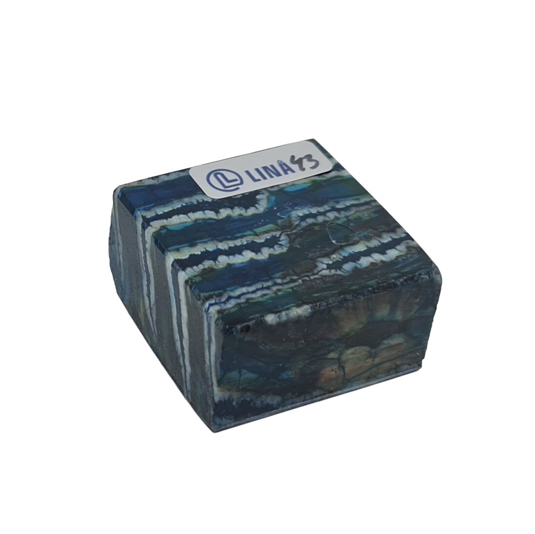 Mammut kindtand, også kaldet mammut molar, stabiliseret af Raffir er et særligt materiale med både historie og karakter. Tanden stammer fra den sidste istid, anslået 10.000 til 40.000 år tilbage, og bærer tydelige spor af sin oprindelse i struktur og farvespil. Gennem stabilisering med resin er materialet gjort anvendeligt til moderne håndværk, hvor det ellers fossile og porøse udgangspunkt får styrke og holdbarhed nok til praktisk brug.