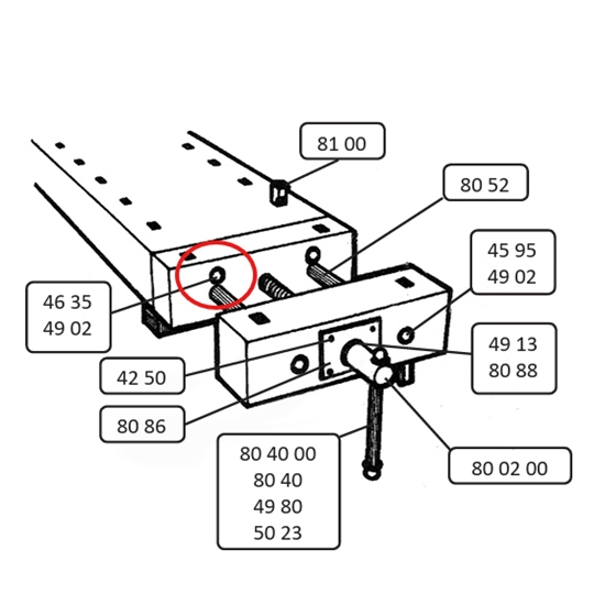 Denne maskinbolt anvendes til at fastgøre den faste del af bagtangen til selve høvlebænken på en Lervad høvlebænk. Bolten er fremstillet i stål og har dimensionen M8 med en længde på 90 mm, hvilket passer til de originale beslag og gevind i konstruktionen.