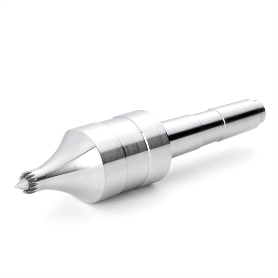 Det centrale spids trækker sig ind i kroppen, når der påføres tryk fra drejebænken, hvilket efterlader ringens tænder rundt om omkredsen til at holde emnet ekstremt sikkert, med spænding fordelt jævnt over tænderne, hvilket også reducerer vibrationer gennem træet ved drejning. Tilbagetrækningen af placeringsstiften betyder, at den ikke kan splitte træet, hvilket gør det ideelt til brug med små, sarte arbejde og laminerede projekter.