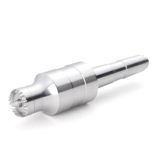 Det centrale spids trækker sig ind i kroppen, når der påføres tryk fra drejebænken, hvilket efterlader ringens tænder rundt om omkredsen til at holde emnet ekstremt sikkert, med spænding fordelt jævnt over tænderne, hvilket også reducerer vibrationer gennem træet ved drejning. Tilbagetrækningen af placeringsstiften betyder, at den ikke kan splitte træet, hvilket gør det ideelt til brug med små, sarte arbejde og laminerede projekter.