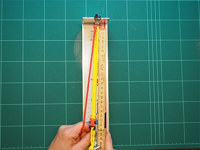 Dernæst skal du sørge for, at du har din ønskede armbåndslængde ved opsætningen af paracord-armbåndet på fletteskinnen. Det er her du skal anvende din udregnede længde. I overstående eksempel skal dit armbånd være 19,51 cm langt. Evt. rund op til 20 cm. Efterfølgende skal du huske, at du skal trække klikspændet fra længden. Vores klikspænde er ca. 3 cm. Dermed skal din snor være 17 cm langt, når du sætter det stramt op på fletteskinnen.