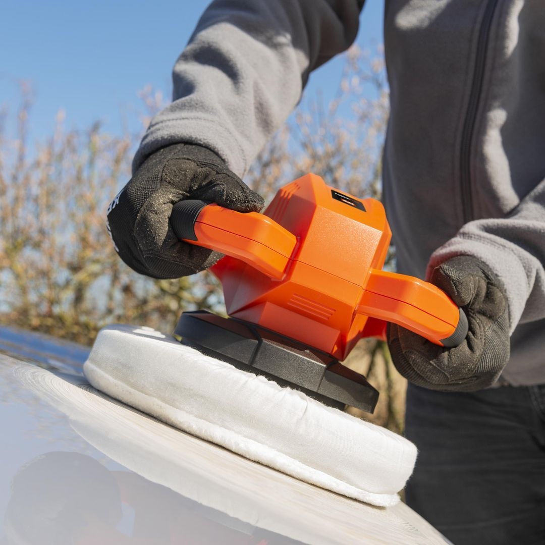 Denne polermaskine gør det nemt at polere og gendanne glansen på din bil, lastbil eller motorcykel. Det er ikke længere et vanskeligt job takket være denne Dual Power polermaskine. Dert gør alt arbejde med 20 Volt batteri og en stor polerskive på Ø 240 mm.
