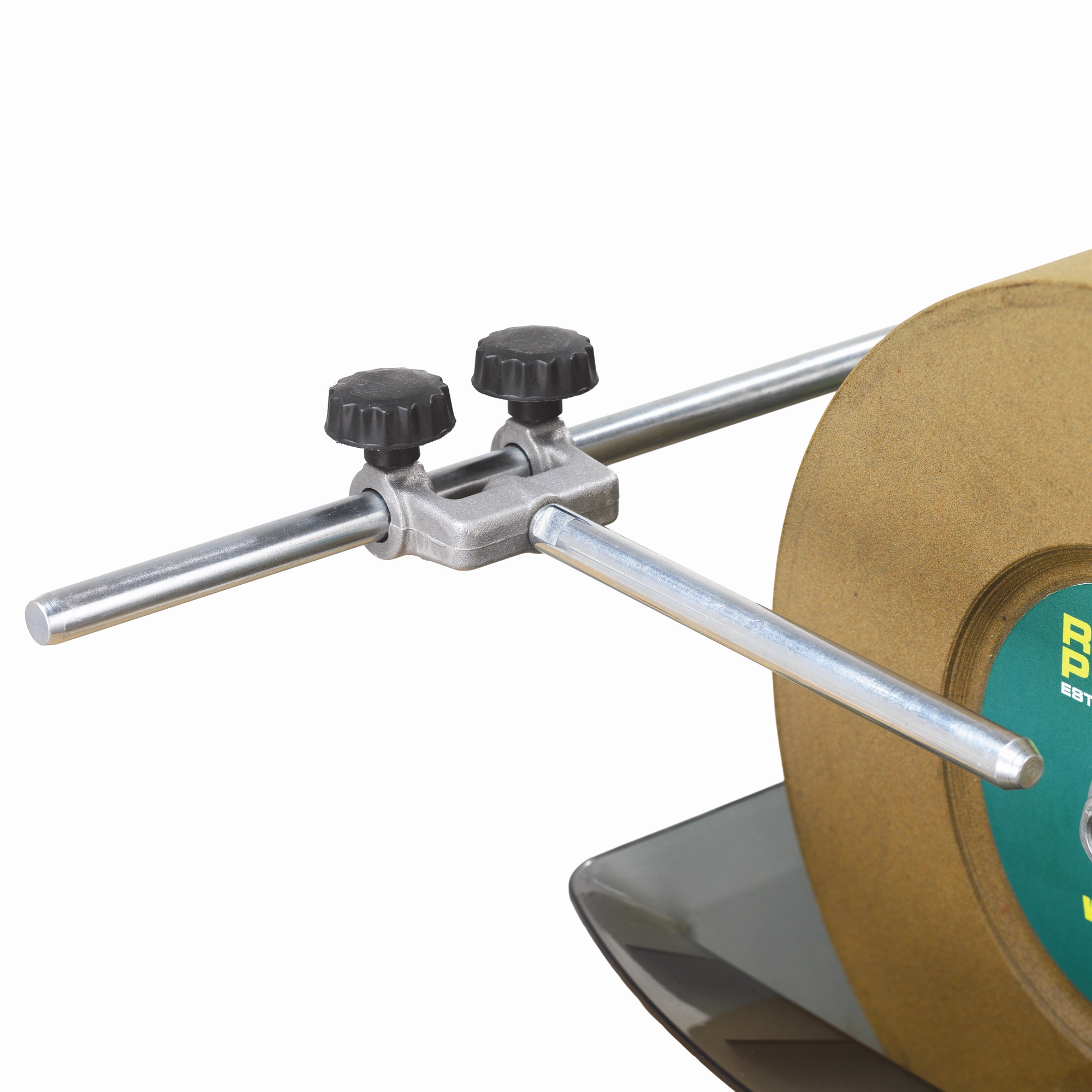 Sideslibningsstangen bruges til at støtte og styre værktøjet under slibning, så det føres stabilt og jævnt. Det giver en mere ensartet slibevinkel og hjælper med at opretholde en lige og præcis æg, især på værktøj hvor kontrol og stabilitet er afgørende.
