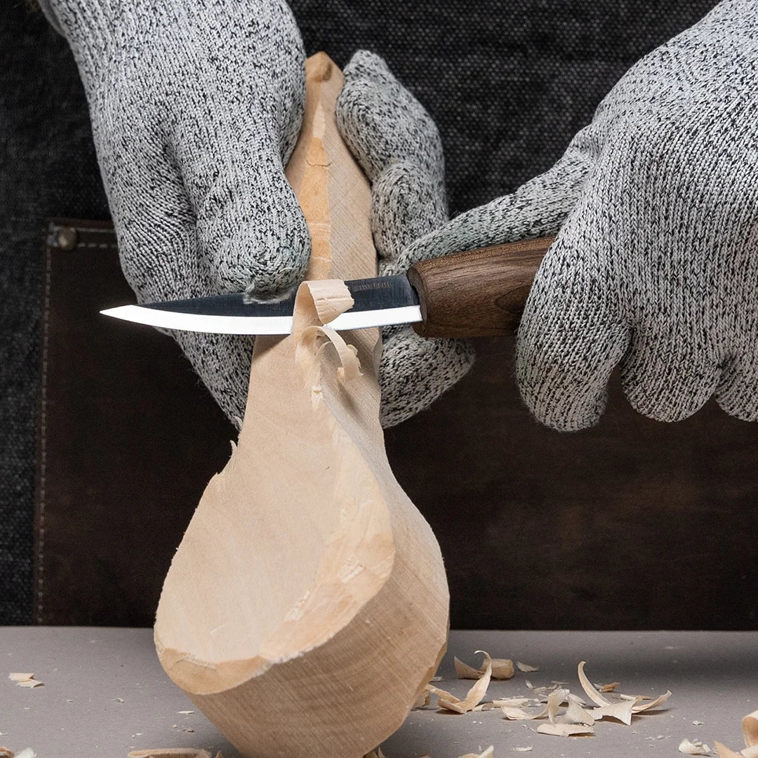 Kernen i dette sæt er to uundværlige knive: en snitte-kniv til fjernelse af træ og detaljeskæring samt en ske-niv til udhulning og skabelse af indviklede riller. Disse knive er dygtigt fremstillet af højkulsstofstål og leveres barberbladsskarpe, klar til at omdanne dine idéer til virkelighed.