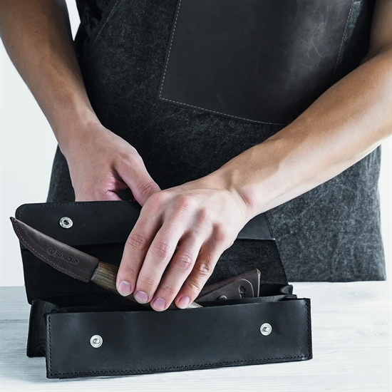 For at holde dine værktøjer sikre og stilfuldt organiseret, har vi inkluderet en holdbar rullepose fremstillet af læder af høj kvalitet i en flot brun nuance. Den beskytter ikke blot dine værdsatte redskaber, men tilføjer også et strejf af elegance til dine skæreprojekter. Denne pose gør det nemt at opbevare og transportere dit sæt, uanset hvor din kreativitet fører dig hen.