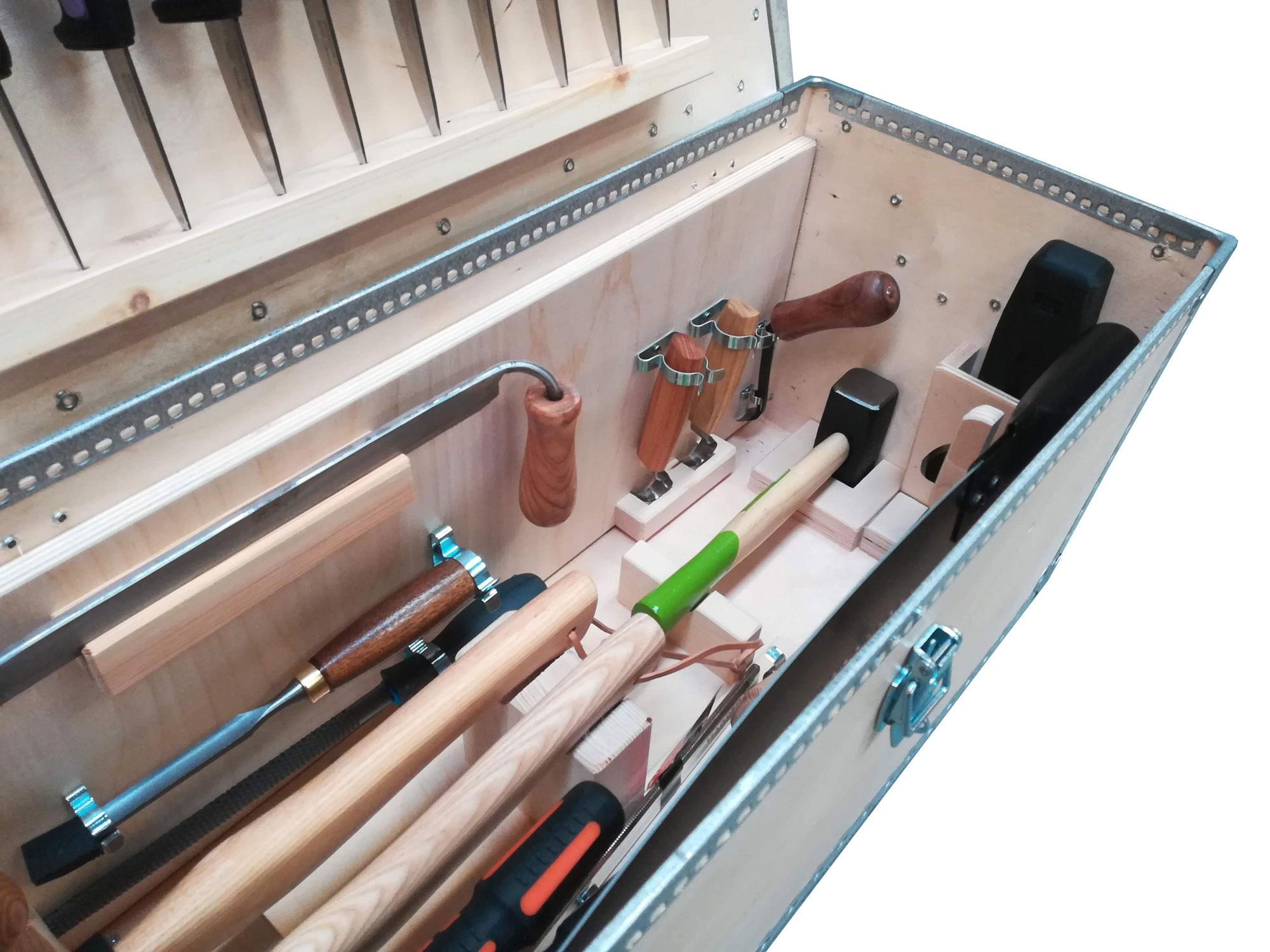 Flot og praktisk kasse med alt, hvad I skal bruge til snittearbejde.