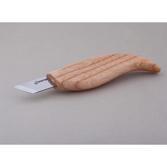 Knivklingen har en speciel bladform med 45-graders vinkel og er lavet af højlegeret kulstofstål, hærdet og godt skærpet.