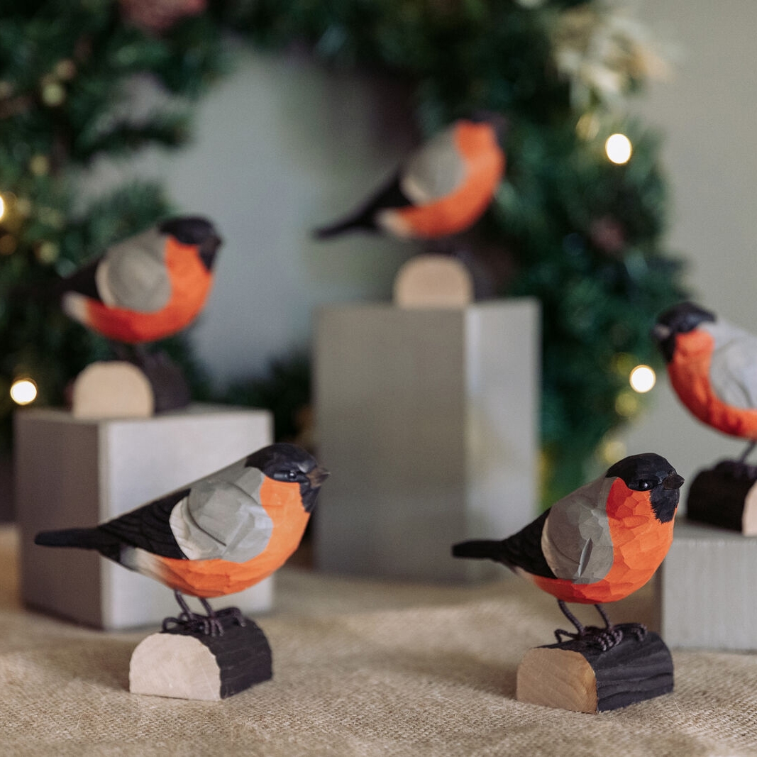 DecoBird Bullfinch er en naturtro træfugl, der er håndskåret og malet. Med sin røde bryst, der smukt skinner mod sneen, er dompap blevet et symbol på julen. Selvom den findes hele året, er den især aktiv omkring fuglebrættet i vintermånederne.