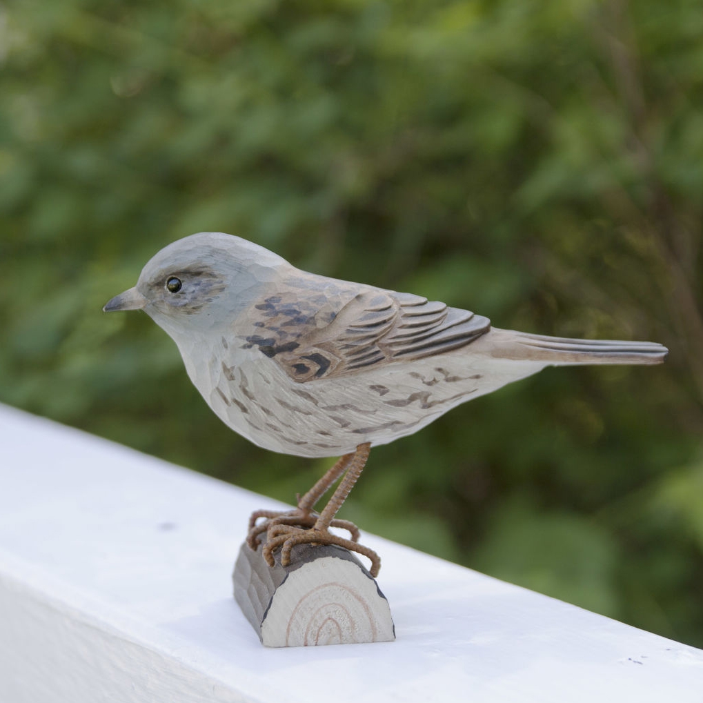 Jernspurven er en lidt ukendt fugl. Den er sky med brune og stålgrå markeringer og gemmer sig ofte i tæt buskads, hvilket gør den svær at få øje på. I modsætning til den levende fugl viser vores håndskårne DecoBird Dunnock gerne sin subtile skønhed, uanset hvor den står.