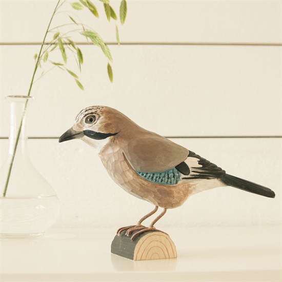 Skovskaden er en smuk beige-farvet fugl med himmelblå bånd på vingerne. Den er også kendetegnet ved sin sorte "overskæg". Disse flotte farver gør DecoBird Jay til en fin dekorativ detalje for fugleelskere. Den er også realistisk i sit mønster og sine farver, hvilket enhver fuglekigger straks vil bemærke.