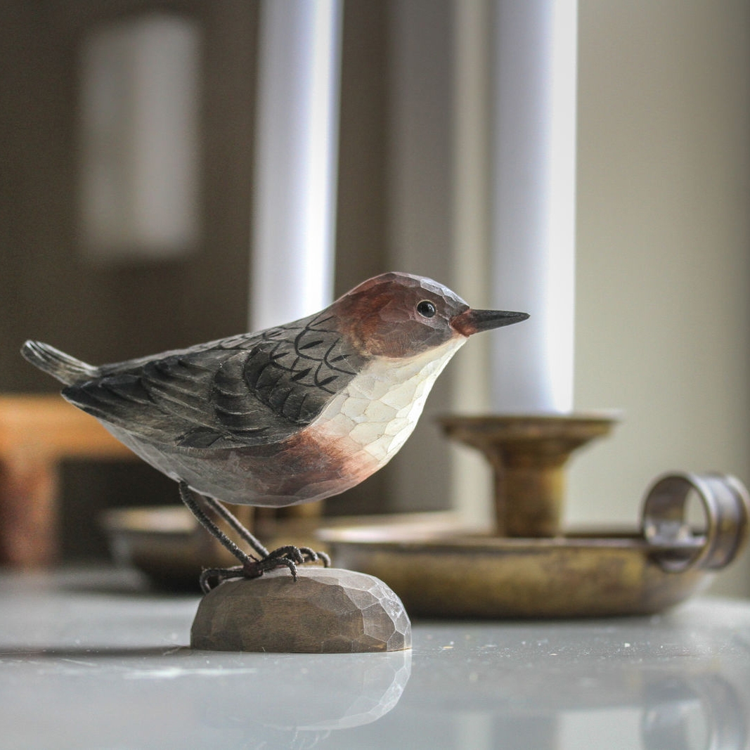 Norges nationalfugl, vandstær, er en del af DecoBird-serien af håndskårne fugle. Vandstærens farve kan variere fra lys chokoladebrun til mørk brun/sort. Prøv at spotte den blandt stenene i strømmende dele af bække og åer. Alle DecoBirds leveres i en enkel, men flot gaveæske.
