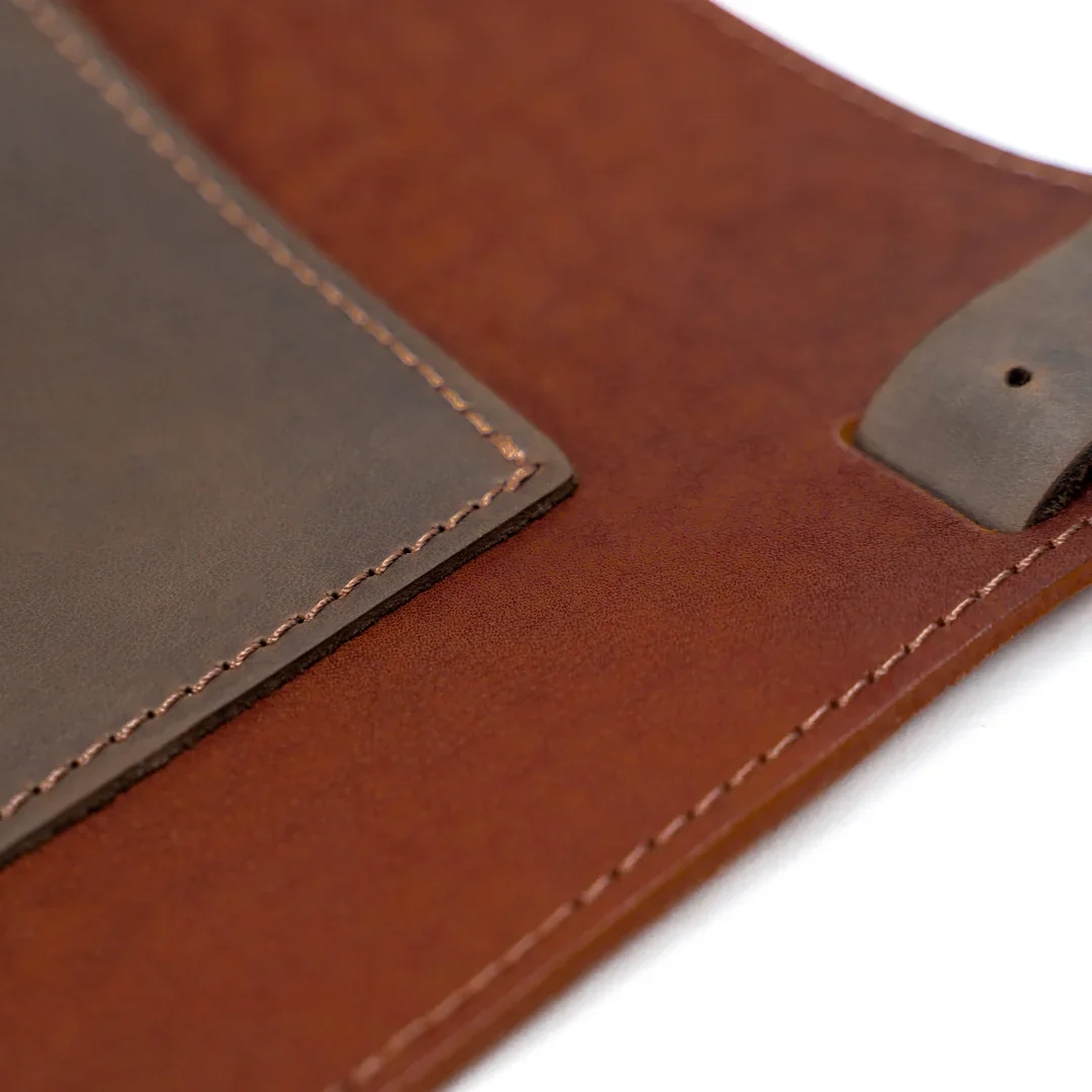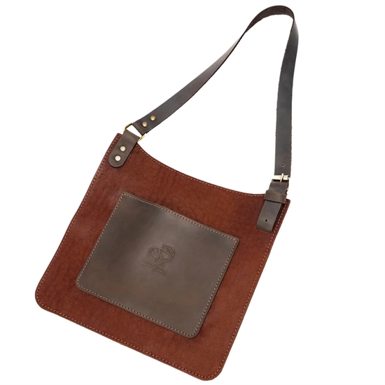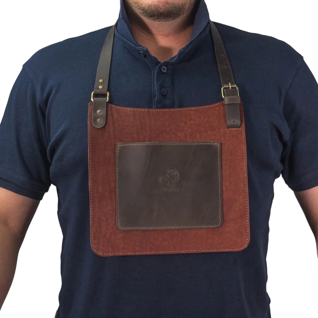 Dette unikke forklæde er fremstillet i holdbart, naturligt brunt læder af høj kvalitet. Rengøring efter brug er enkel – snavs og fedt kan nemt aftørres. Forklædet fungerer som en beskyttende “brystplade” og har en funktionel patch-lomme på brystet, som giver nem adgang til dine værktøjer under arbejdet.