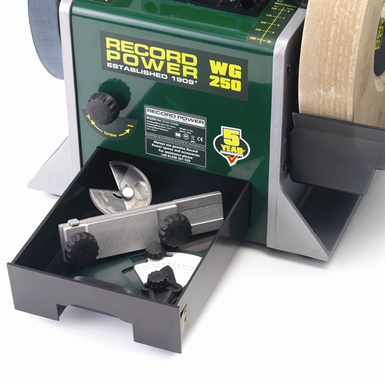 I dette sæt medfølger WG250/K Diamond Trueing Tool, et vigtigt tilbehør, der sikrer, at den ydre diameter forbliver koncentrisk, og at slibeoverfladen altid er helt plan. Dette gør det muligt at opnå konsekvent præcision og skarpe kanter på alle dine værktøjer.